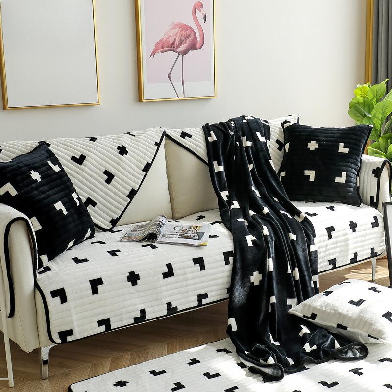 Cat Petting Sense Зимняя плюшевая подушка для дивана Нескользящая ткань Четыре сезона Универсальный кожаный зимний чехол для дивана Чехол 70*70cm