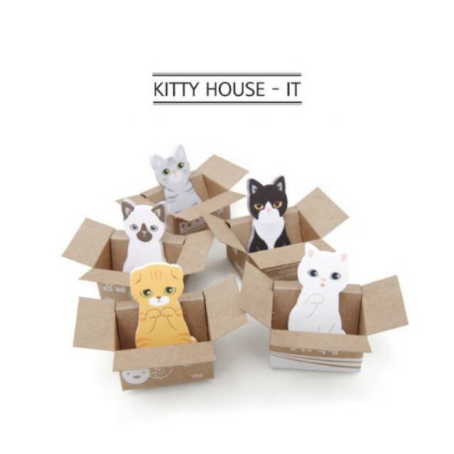 Post-it mini yang jika dilipat, berbentuk kucing duduk di dalam kardus.