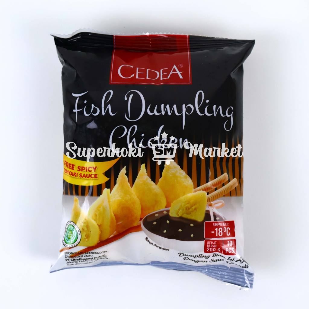 Cedea Fish Dumpling Chicken, merupakan makanan instan yang terbuat dari ikan olahan pilihan dan diproses secara higienis bersertifikasi HALAL dari MUI dan diproduksi berdasarkan standar BPOM RI, Terbuat dari Ikan Olahan Berkualitas ini dapat disajikan dengan berbagai menu makanan lainnya.