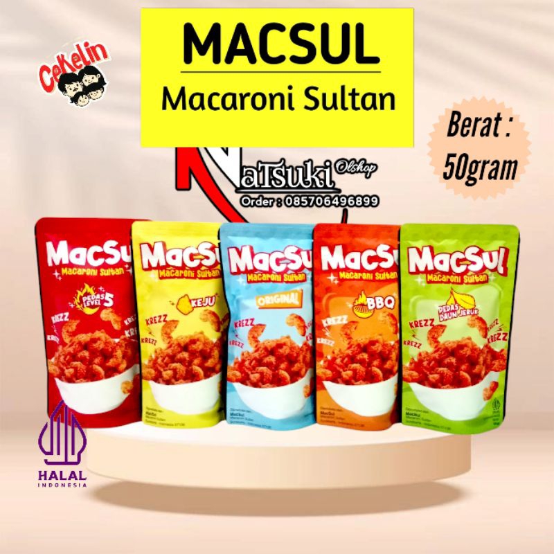 Snack Cekelin MASCUL (Macaroni Sultan) merupakan salah satu Cemilan VIRAL favorit di kalangan anak-anak muda (Milenial), rasanya yang Gurih amp; Super Renyah, cocok untuk menemani aktivitas sehari-hari, di saat santai, pas nonton drakor, ataupun nongkrong bareng keluarga maupun teman. Snack Cekelin terbuat dari bahan-bahan Pilihan amp; Berkualitas, diolah secara Higienis, membuat Snack Cekelin nggak cuma ENAK, tapi juga bikin KETAGIHAN!!