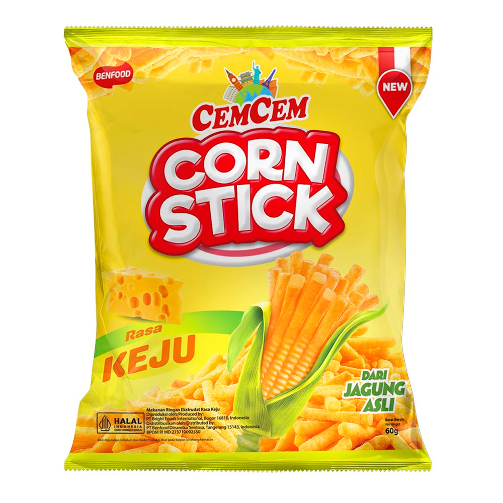 Merupakan camilan berbentuk crunchy tasty stick. Berbentuk stick dan renyah, snack ini dilengkapi dengan perasa keju yang lezat. Cocok dinikmati saat sedang bersantai. Tersedia dalam kemasan isi 60 gram.
