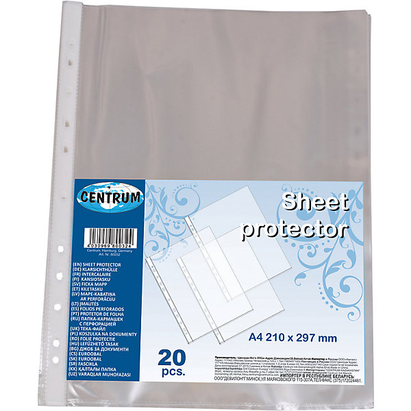 Centrum Папка-кармашек (файл) А4 с перфорацией, 20 штук в упаковке