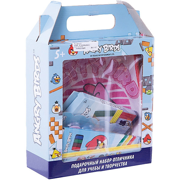 Подарочный набор отличника "Angry Birds" для учебы и творчества. Состав набора: сумка, ластик, линейка, набор магнитов, пластилин, клей, точилка, карандаши цветные