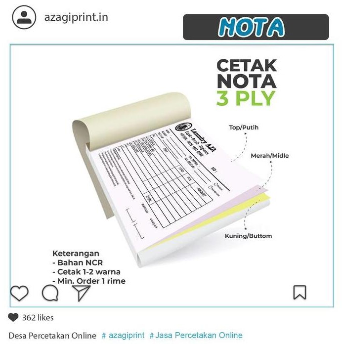 Cetak Nota Minimal 1 Rim 3 Ply