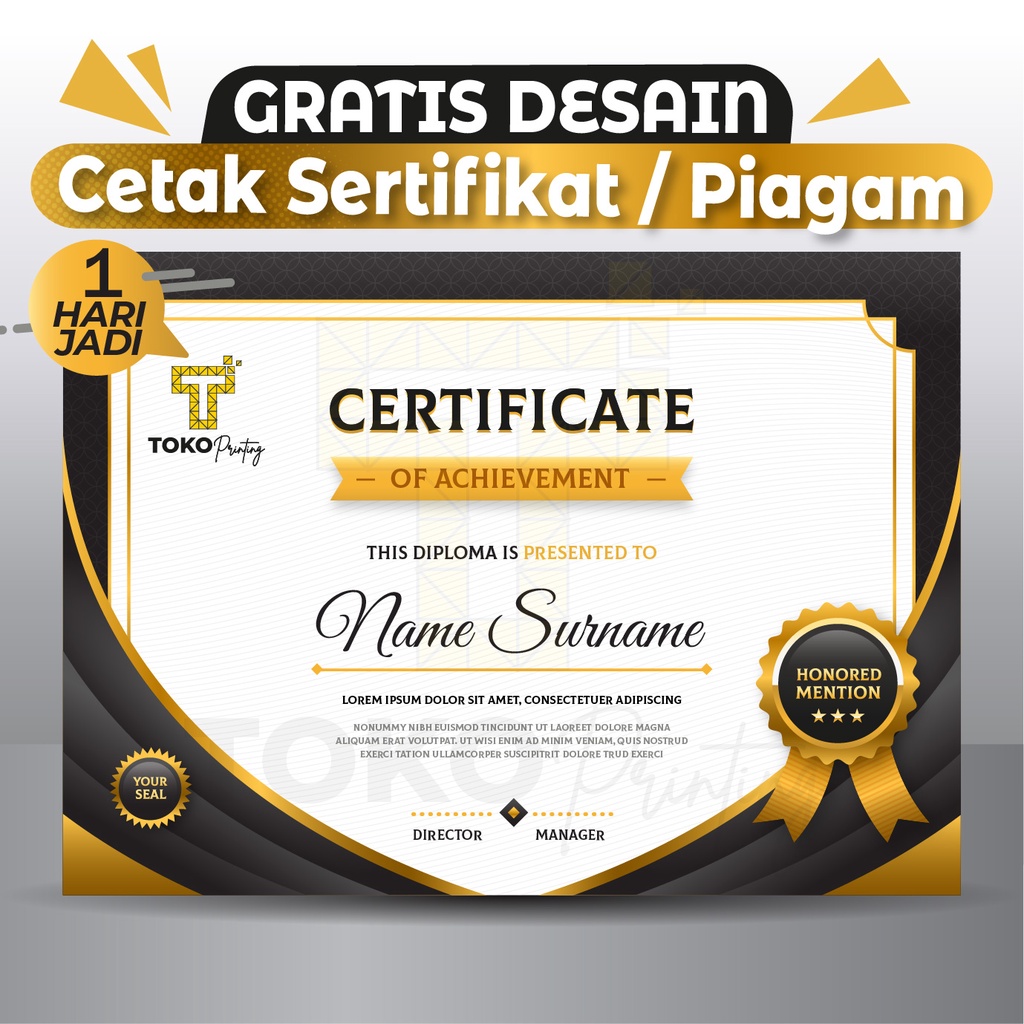 Cetak Sertifikat / Piagam | GRATIS DESAIN | TERMURAH !!!