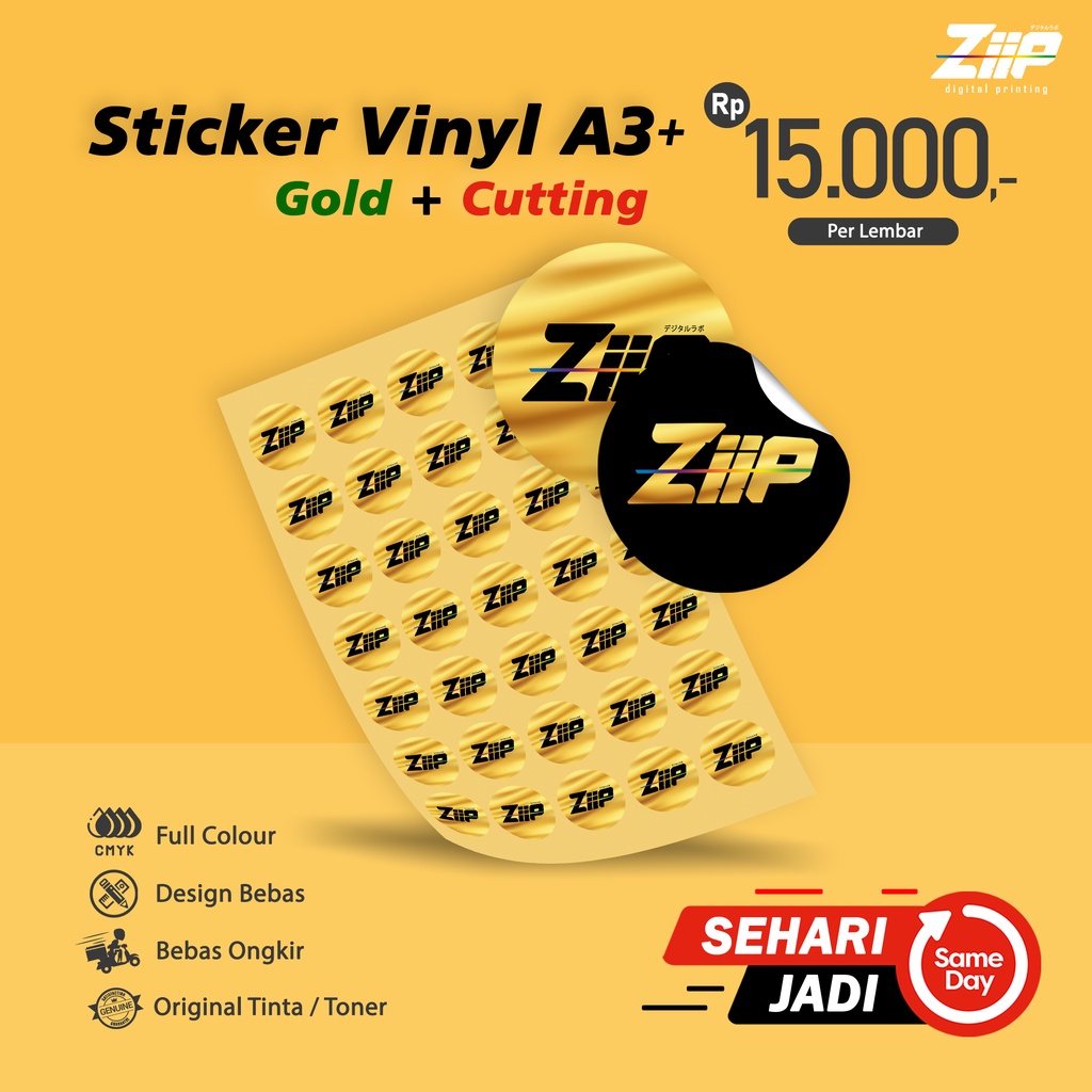 Cetak Sticker Label Vinyl Gold A3+ Include Cutting