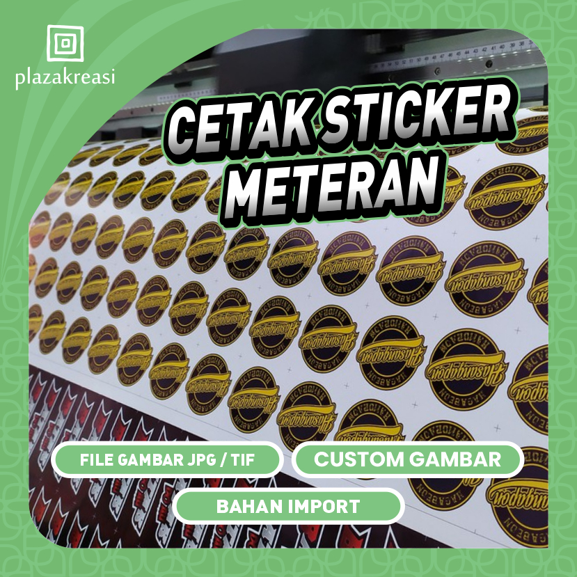 - Bahan Stiker Meteran (Stiker Vinyl) dicetak menggunakan mesin Indoor tinta Ecosolvent