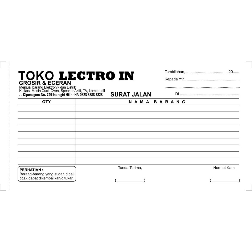 Nota Return, Servis, Surat Jalan Lectro In