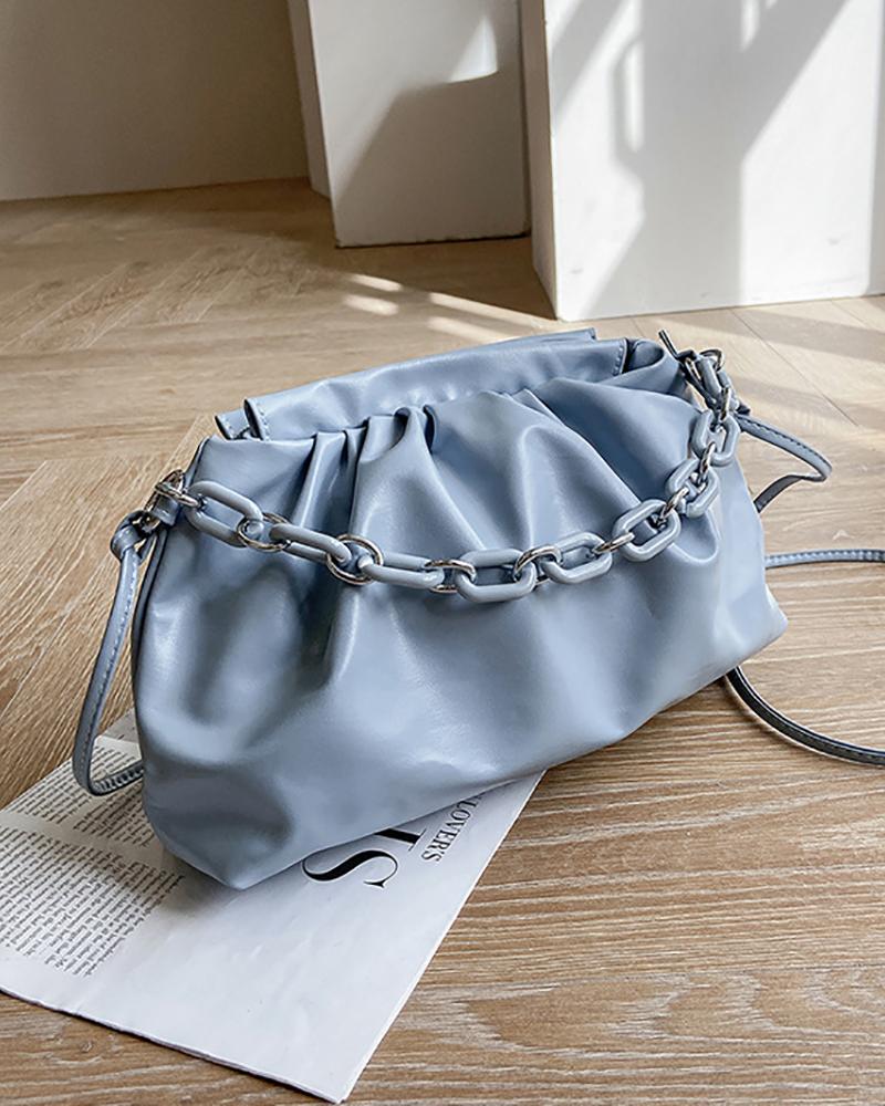 Chain Decor Ruched Shoulder Bag, Blue