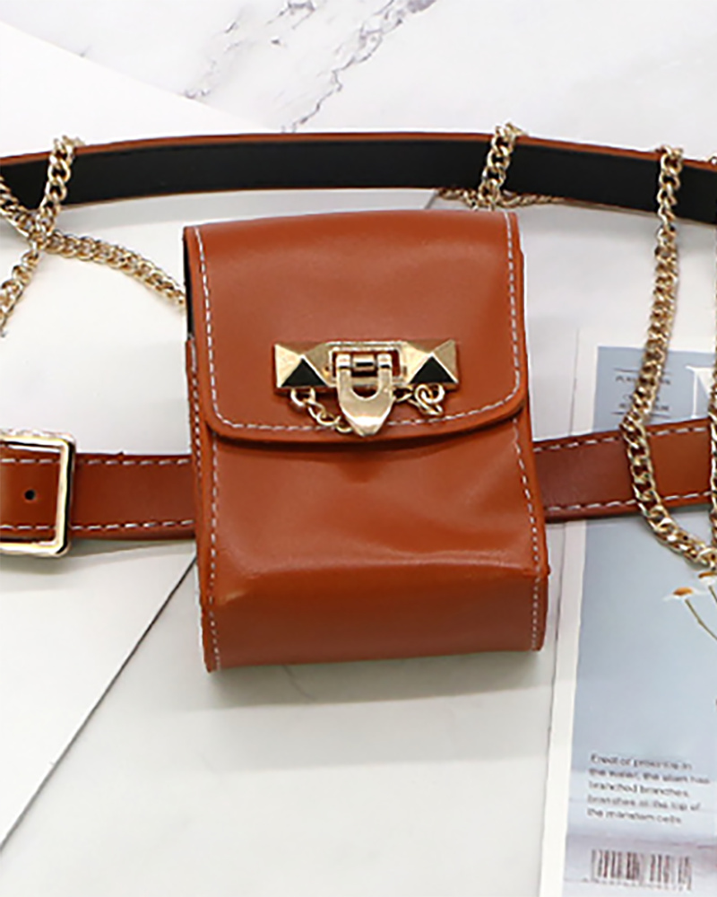 Chain Strap Buckled Simple Fanny Pack, Brown