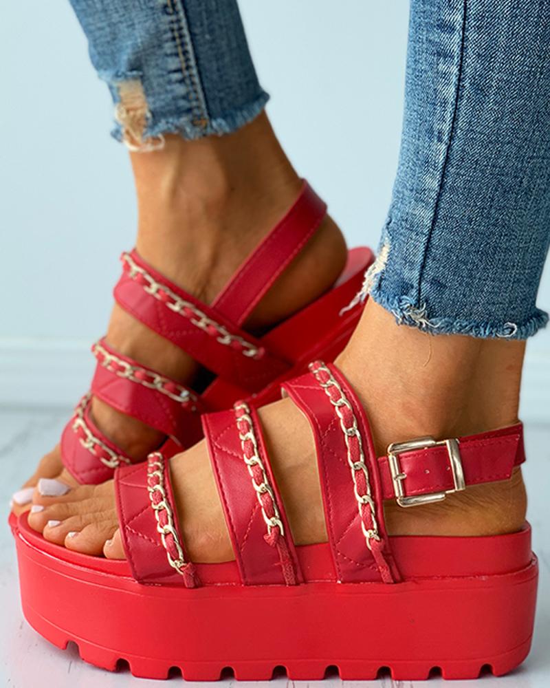 Chain Strap Buckled Slingback Platform Flat Sandals, Red