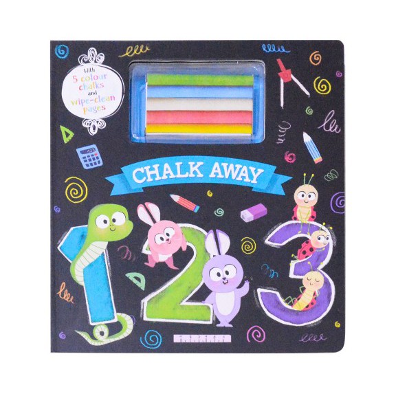 Chalk Away: 123 Board Book - With 5 Colour Chalks and Wipe-Clean Pages