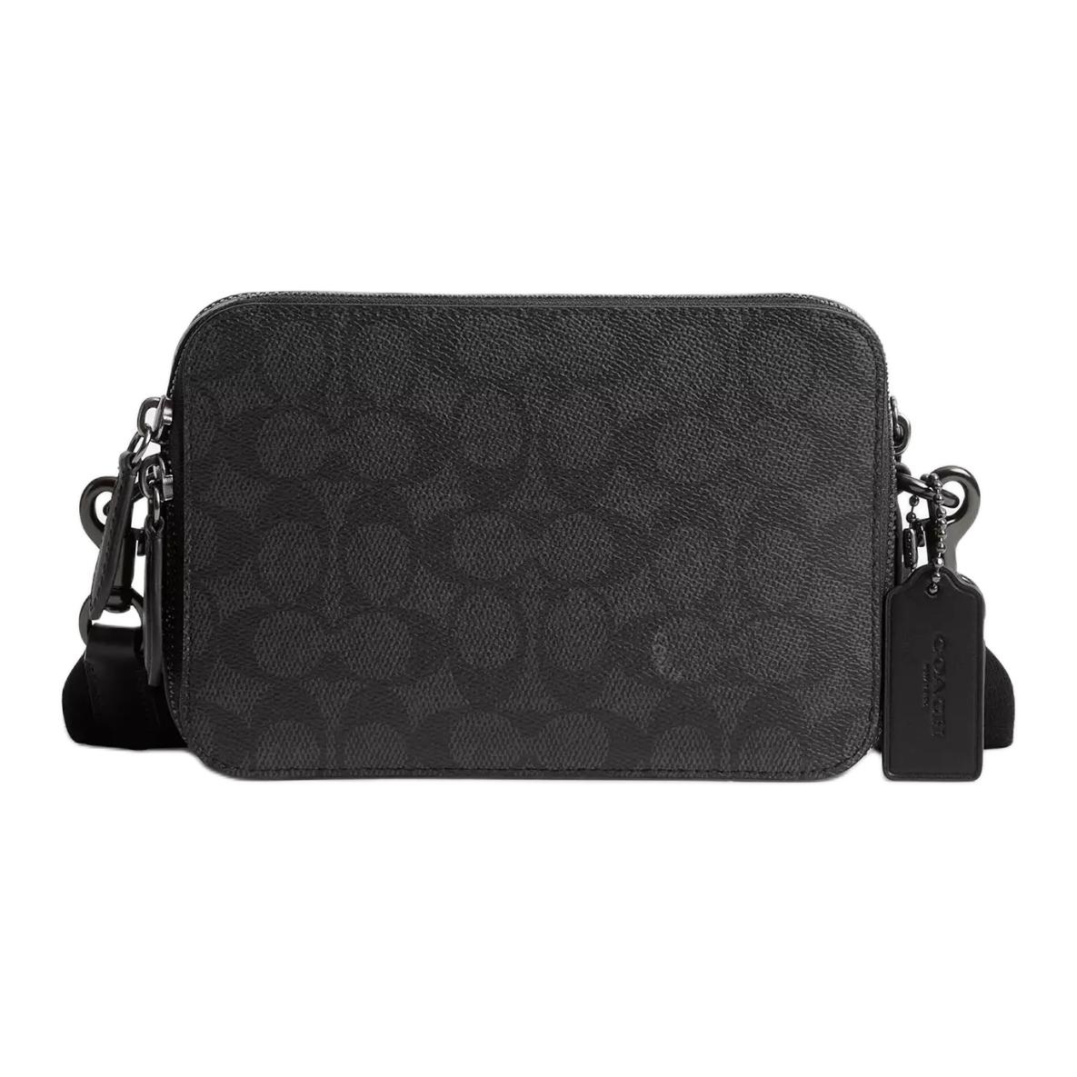 Charter Signature с покрытием из холста и телячьей кожи наплечная сумка, маленькая мужская сумка через плечо угольный COACH