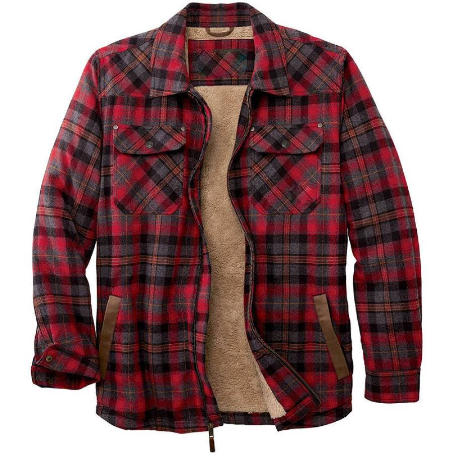 Checked Lapel Plus Velvet Padded Jacket