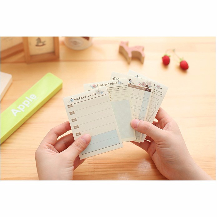 Checklist, Time Schedule, Weekly Planner, Monthly Planner Flower Bird terbuat dari bahan kertas. Memudahkan kamu tuk mencatat setiap perencanaanmu, baik per waktu, hari, minggu, maupun bulan.