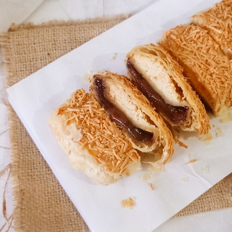 Perpaduan coklat dan keju yang mendominasi, dan dibalut dengan pastry yang renyah dan enak. Ada 2 isi yaa :