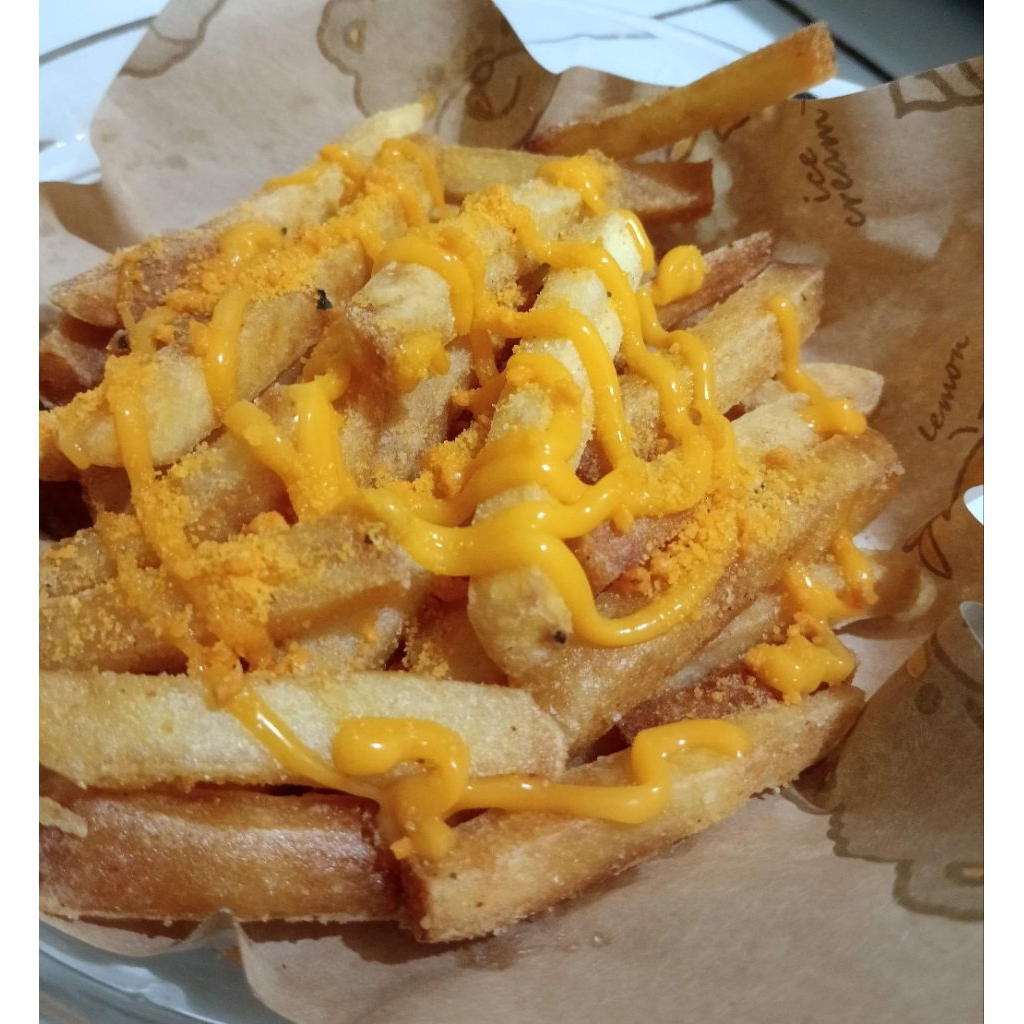 French fries berbumbu dengan taburan cheese crumbs yang renyah dan cheese sauce yang asin gurih