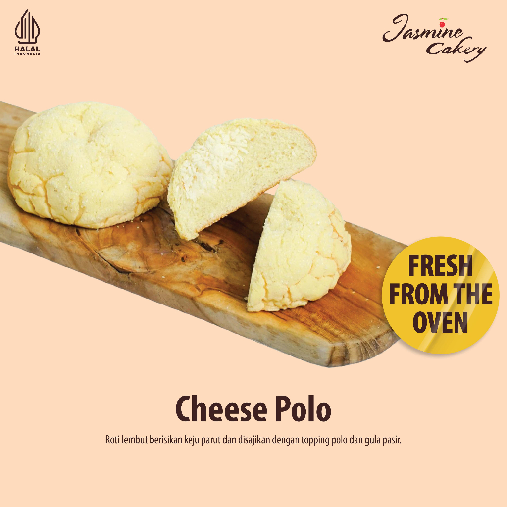 Salah satu varian roti yang digemari oleh Sahabat Jasmine adalah Cheese Polo. Cheese Polo adalah Roti lembut berisikan keju parut dan disajikan dengan topping polo dan gula pasir.
