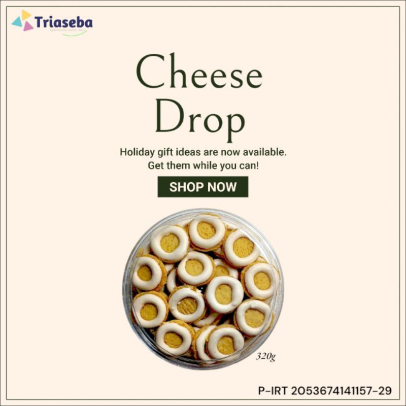 * cookies dengan Toping krim keju yang nikmat, bertekstur Renyah, crunchy namun tetap lembut di mulut.