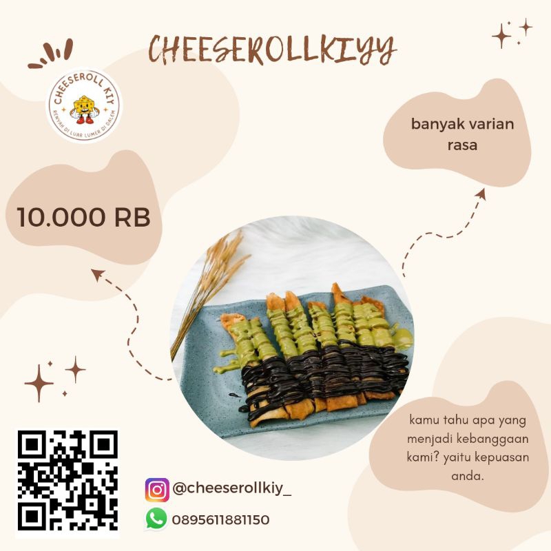 Cheeseroll adalah makanan khas bandung yang di sajikan sebagai makanan cemilan, cheeseroll adalah kue gulung semacam pastry atau lumpia yang isinya adalah keju,kulit pastry yang sangat renyah membuat keju yang lembut serta dilengkapi dengan varian rasa diatasnya.
