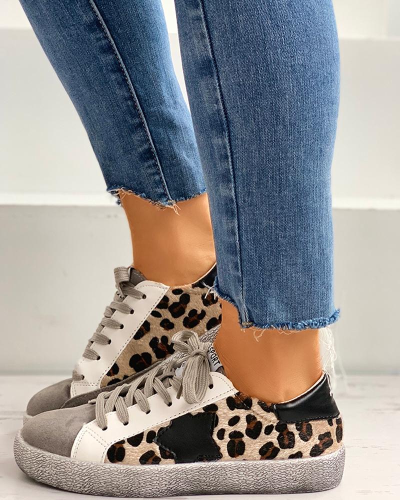 Cheetah Pattern Lace-up Casual Sneakers, Leopard