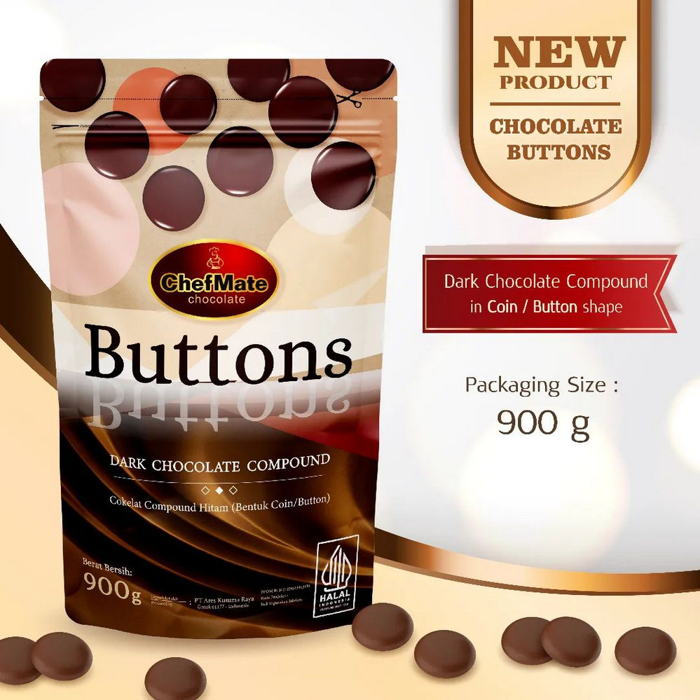 ChefMate Chocolate Buttons produk baru untuk kebutuhan baking, berupa kepingan coklat koin, praktis digunakan, mudah dilelehkan.