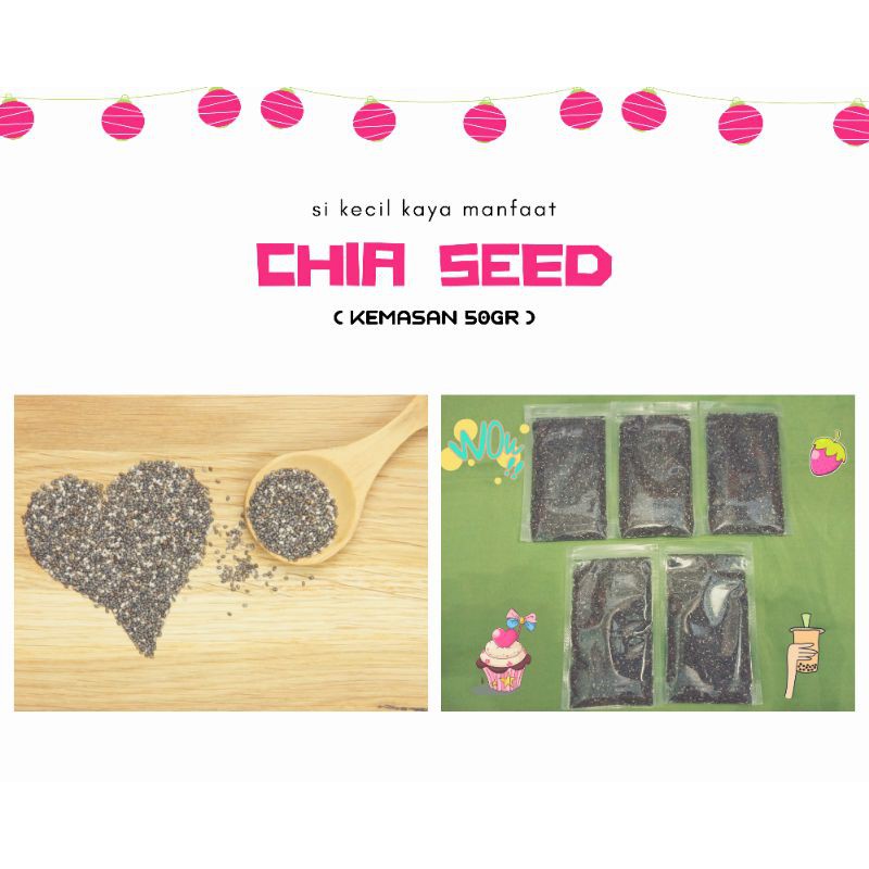 Chia seed adalah bijian-bijian kecil dari tanaman Salvia hispanica, salah satu jenis tanaman mint. Warna chia seed bervariasi dari hitam, abu-abu, maupun hitam dengan bercak-bercak putih. Bentuknya oval dengan ukuran sekitar 1-2mm. Chia seed berasal dari daerah Amerika Tengah dan Amerika Selatan. Kata chia sendiri pun berasal dari bahasa suku Maya yang artinya kekuatan.