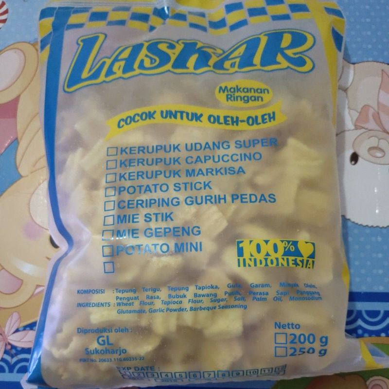 snak dengan bungkus plastik yang tebal dan juga ada tentengannya sehingga mudah untuk di bawa, tidak mudah mlempep. Netto snak +-250 gram.