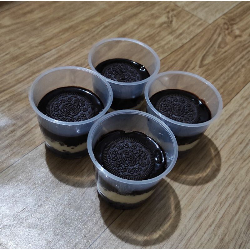 Choco Cheese cake in cup dengan topping oreo, dark chocolate dan cheese cream yg lembut