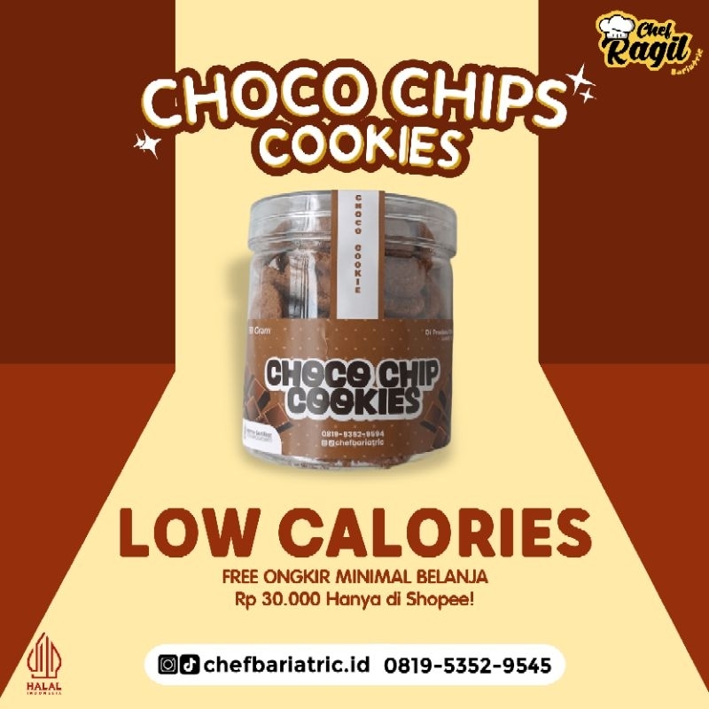Choco Chips Premium by Chef Ragil adalah camilan sehat yang menggabungkan rasa cokelat premium dengan kandungan nutrisi seimbang. Dibuat khusus untuk kamu yang sedang menjaga pola makan, menjalani diet bariatrik, atau menghindari camilan tinggi gula dan lemak. Dengan bahan dasar dark chocolate pilihan, rendah gula, dan tambahan serat alami, camilan ini cocok untuk dijadikan teman ngemil sehat kapan saja.