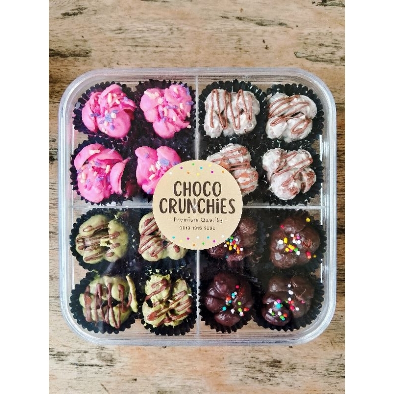 Cocok untuk dijadikan cemilan di rumah, di kantor, di sekolah, dan dimana saja. Choco Crunchies bisa dikonsumsi oleh anak2 maupun dewasa.