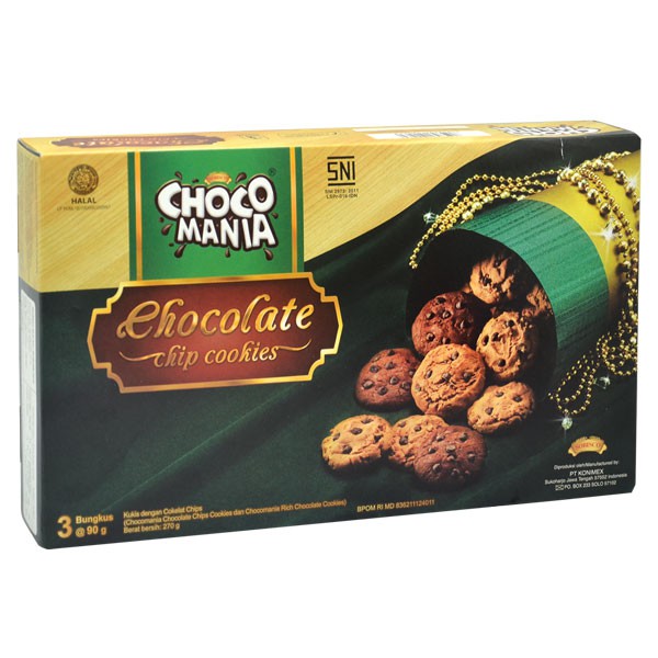 Chocomania adalah biskuit dengan cokelat chip, dikemas secara praktis dengan rasa yang enak sangat cocok dinikmati saat acara bersama atau bisa juga untuk oleh-oleh sanak saudara
