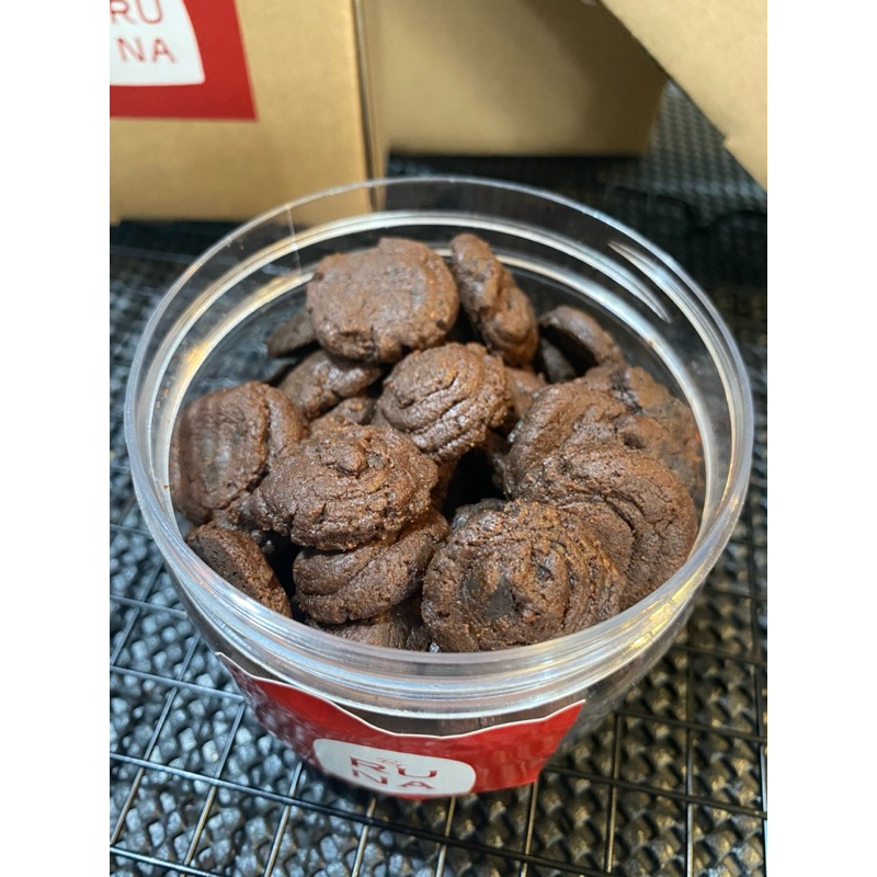 Terbuat dari tepung, dark choco powder, dan dark choco compound. Manisnya pas dan nyoklat banget.