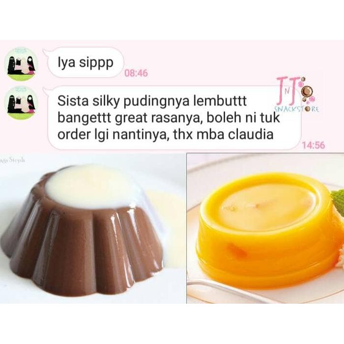 Choco silky pudding only @25ribu isi 135gr, bisa jadi 1.200ml pudding Lebih hemat kan?? Dipake di ch*time, sum*boo dan resto besar lainnya. Bisa untuk topping dan bisa makan puddingnya aja rasanya beda dari pudding biasanya!