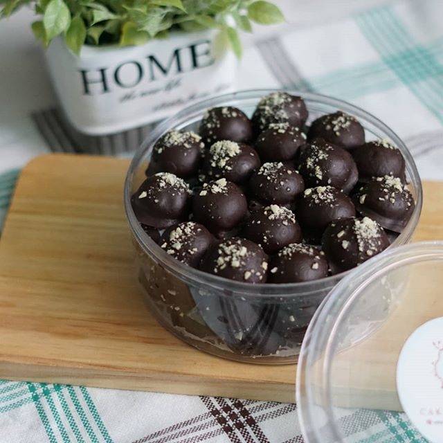 Cookies coklat ini berbentuk bulat yg dilumeri coklat dan di taburi almond panggang