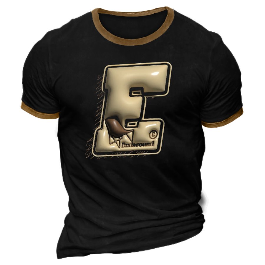 Chocolate Element 3D Letters 3D Embossed Print Men's Emboss Print Crew T-Shirt
