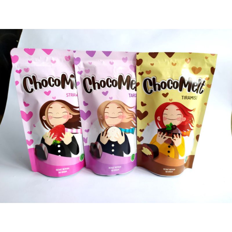 Chocomelt. Snack coklat dengan isian rasa cappucino, taro dan strawberry. Cocok banget buat kalian para pecinta coklat