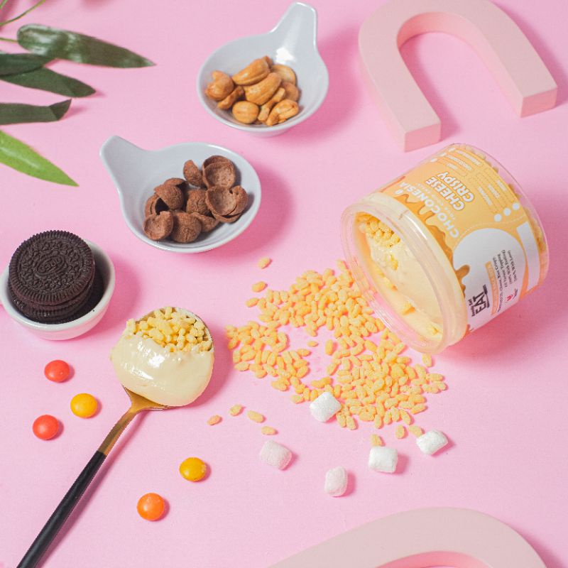 Choconesia Crispy Cheese adalah cemilan rice crispy yang dipadukan dengan varian rasa cheese dan beberapa pilihan varian topping seperti original, chacha, choco crunch, marshmallow, oreo dan kacang mede.