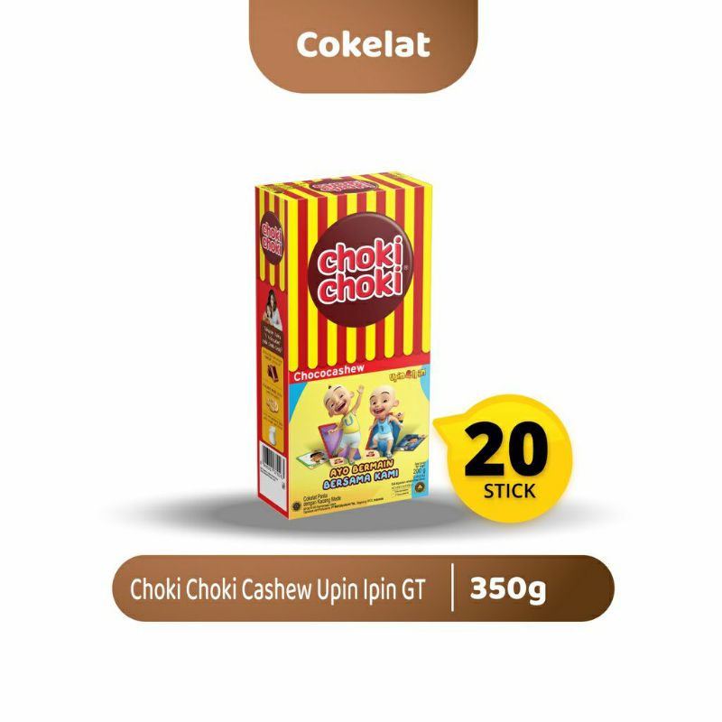 Choki-Choki Cashew Upin IpinGT, Choki-Choki hanya terbuat dari coklat berkualitas dan susu krim dalam format pasta coklat. Kenikmatan yang menyenangkan yang mengerti anak-anak. Stick coklat dengan perpaduan rasa cashew yang sangat digemari.