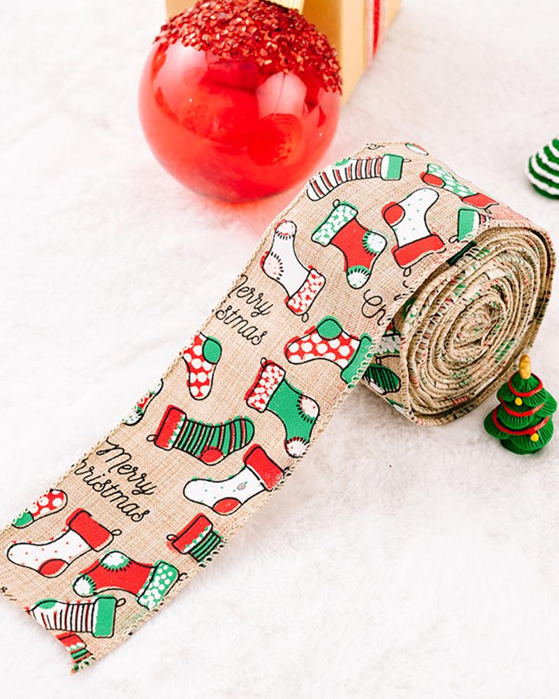 Christmas Star Tree Letter Socks Pattern Gift Ribbon Decoration, Style1