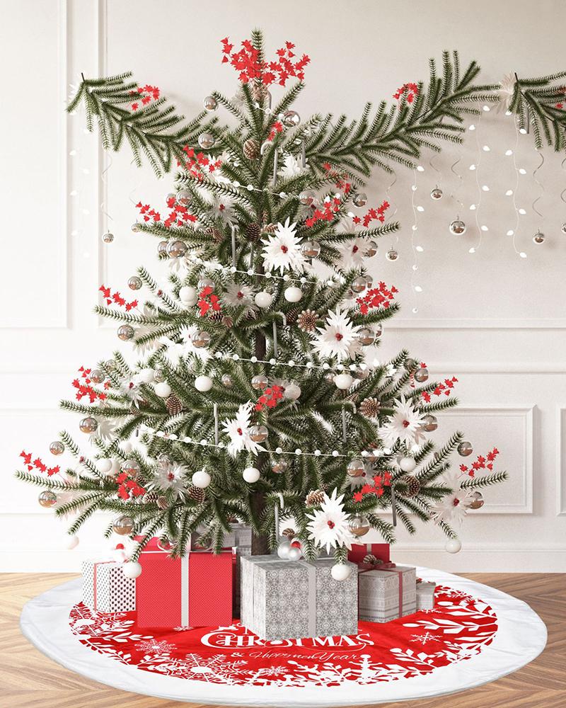 Christmas Tree Plush Skirt Faux Fur Xmas Tree Rug Christmas Decorations, Red