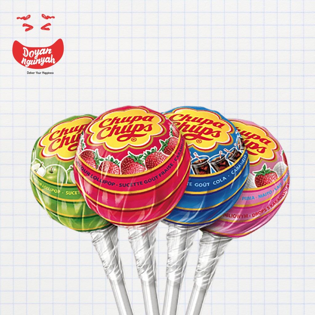 Chupa Chups Lollipop adalah permen lolipop paling populer di Indonesia. Sudah terkenal lama dan hampir ada di setiap tempat2 penjualan, entah itu supermarket besar-kecil-mini, toko2 makanan, warung, hingga kadang di sebelah mbak2 kasir tempat kita biasa jajan makan di cafe atau resto pun ada. Permen yg mempunyai daya sebar sangat baik, dgn rasa permen yg enak dgn kandungan vitamin C yg sangat populer diterima masyarakat. Harga yg sangat murah, sangat ringan di kantong. Namun tau kah anda, permen dgn budget beli seribu-an ini ternyata salah satu permen import yg terkenal di dunia? Adalah Perfetti van Melle S.p.A - Italy, sebagai pemegang lisensi utama dari brand Chupa Chups. Dan produk Chupa Chups di Indonesia, termasuk lolipop ini, adalah produksi dari Perfetti van Melle Ltd. - Vietnam diimport oleh PT. Perfetti van Melle Indonesia - Bogor, Indonesia. Jadiiiii, yg m4u permen lolipop dgn rasa dunia harga warung, silahkan di order buat pelengkap list cemilan yg anda beli di c4u. Berikut varian rasa yg dipunyai Chupa Chups Lollipop: