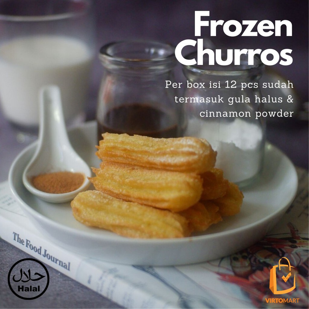 Isian : churros siap goreng, dengan taburan gula halus & cinnamon powder dengan rasa klasik otentik. Garing di luar, lembut di dalam