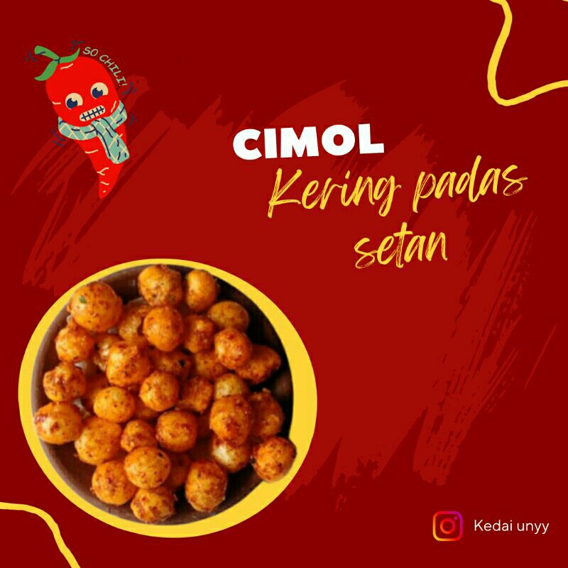 Cimol pedas adalah makanan ringan yang terbuat dari adonan tepung terigu dan berbagai bumbu, seperti cabai dan bawang. Biasanya cimol dibentuk menjadi bola-bola kecil dan digoreng hingga renyah. Cimol pedas memiliki cita rasa gurih, pedas, dan sedikit manis, yang membuatnya menjadi camilan yang populer di Indonesia. Makanan ini sering disajikan dengan saus pedas atau saus tomat sebagai pelengkap. Rasanya yang pedas dan renyah membuat cimol pedas menjadi pilihan yang cocok bagi pecinta makanan ringan pedas.