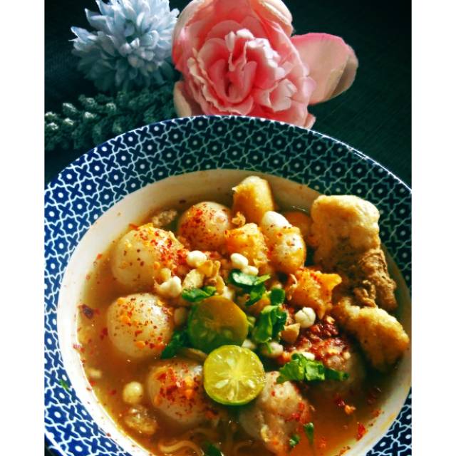 Nyummyyyy banget! Perpaduan baso aci, baso sapi, siomay kering, batagor kering dan pilus, ditambah dengan cabe bubuk (takaran bisa disesuaikan dengan keinginan), dan yang pasti ada taburan bawang goreng dan seledri , utk lengkapi rasa, dalam packing sudah tersedia juga jeruk nipisnya.