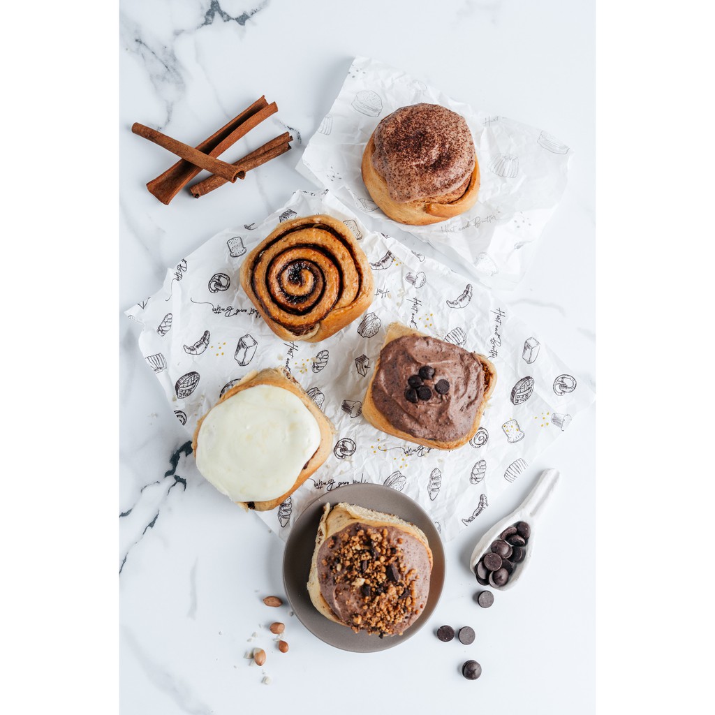 Our cinnamon rolls are one of our best sellers. Made with premium ingredients with no preservatives and no artificial sweeteners. These fluffy and buttery bread are filled generously with cinnamon sugar and topped with our homemade glaze that drips into the middle which resulting in perfection in every bite.