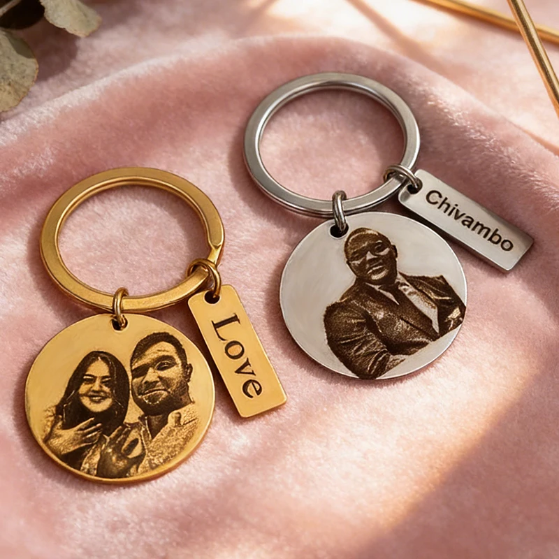 Circle Rectangle Pendant Photo Customized Keychain Gift Portrait Name Blessing Text Personalized Key Ring Stainless Steel