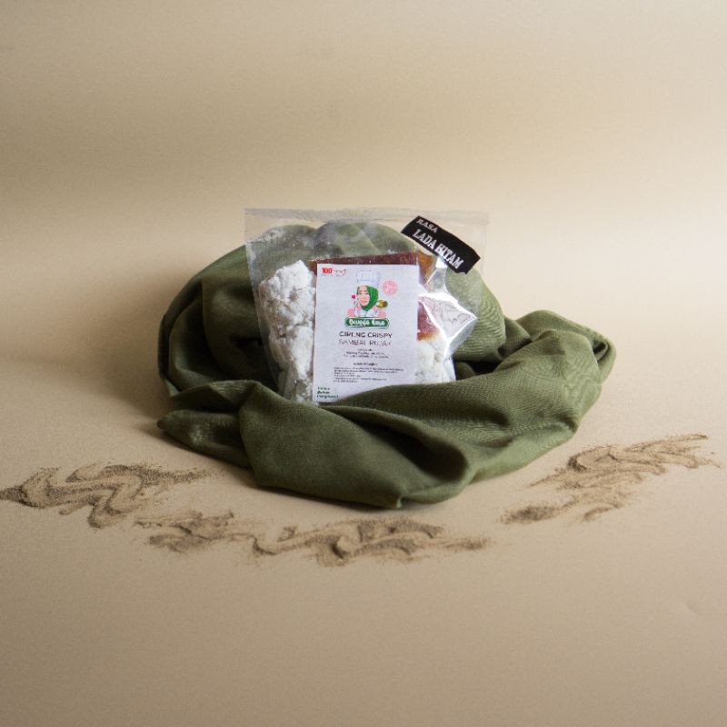 - Goreng cireng crispy yang telah sedikit dipipihkan terlebih dahulu (tingkat kematangan dapat disesuaikan dengan selera)