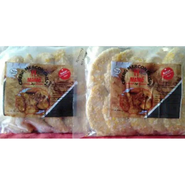 Mame Cireng Mercon Crispy adalah cireng dengan isian ayam suwir pedas, berbalur tepung panir yang dijamin renyah saat digoreng.