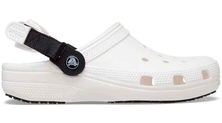 Enjoy the comfort and style of the iconic clog, now with a slip-resistant outsole and unique adjustable heel strap. In this versatile clog, you’ll have the benefit of enhanced traction and security, which can meet a variety of needs. The specially-designed heel strap adjusts to be extra secure, and is easier to get on and off with its textured pull tabs. Features the same Crocs Lock™ slip-resistant treads as found in the Crocs at Work™ Collection. Plus, Jibbitz™ holes on the upper makes them easy to personalize. The Classic SR Clog offers the opportunity to be confident, secure and comfortable in your own shoes. Classic Adjustable SR Clog Details: • Incredibly light and fun to wear • Crocs Lock™ slip-resistant tread • Adjustable heel strap with textured pull tabs • Water-friendly, easy to clean and quick to dry • Ventilation ports add breathability and help shed water and debris • Customizable with Jibbitz™ charms • Iconic Crocs Comfort™: Lightweight. Flexible. 360-degree comfort.